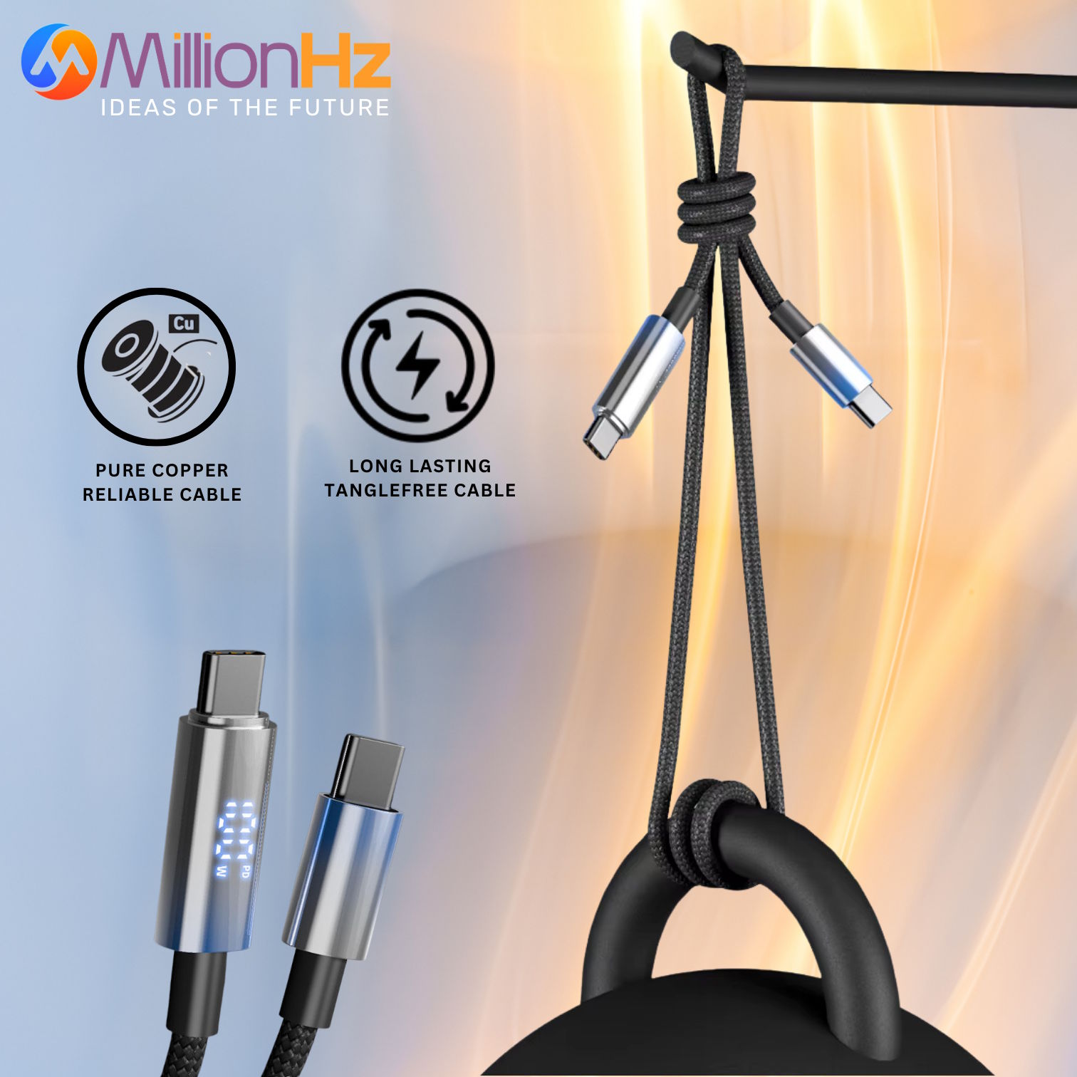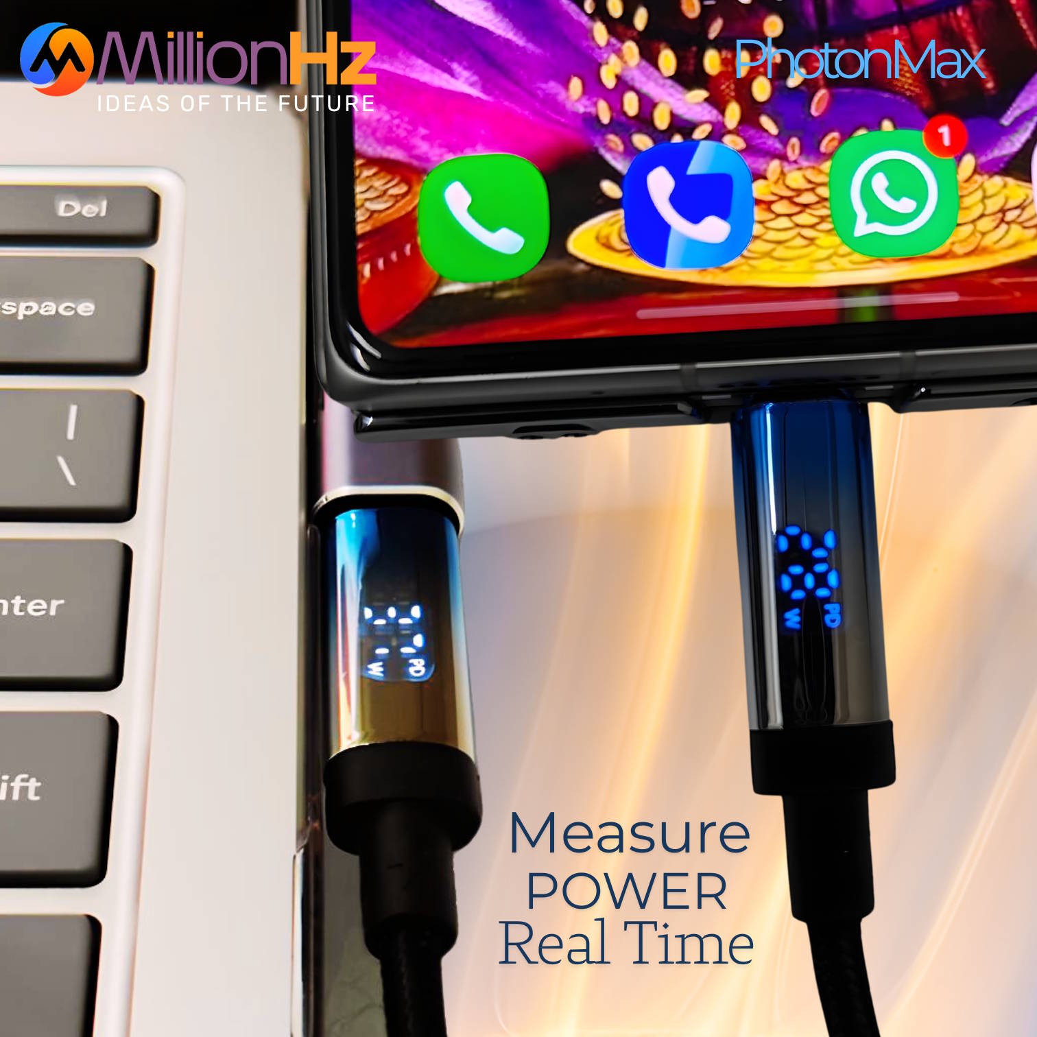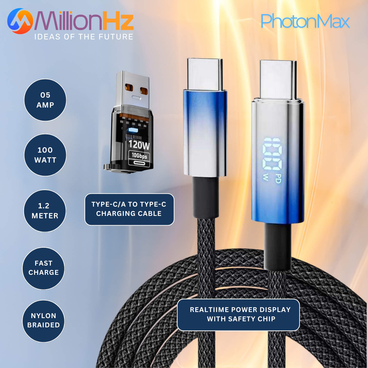 PhotonMax – Type-C/A to Type-C Fast Charging Cable with Real-Time LED Power Display