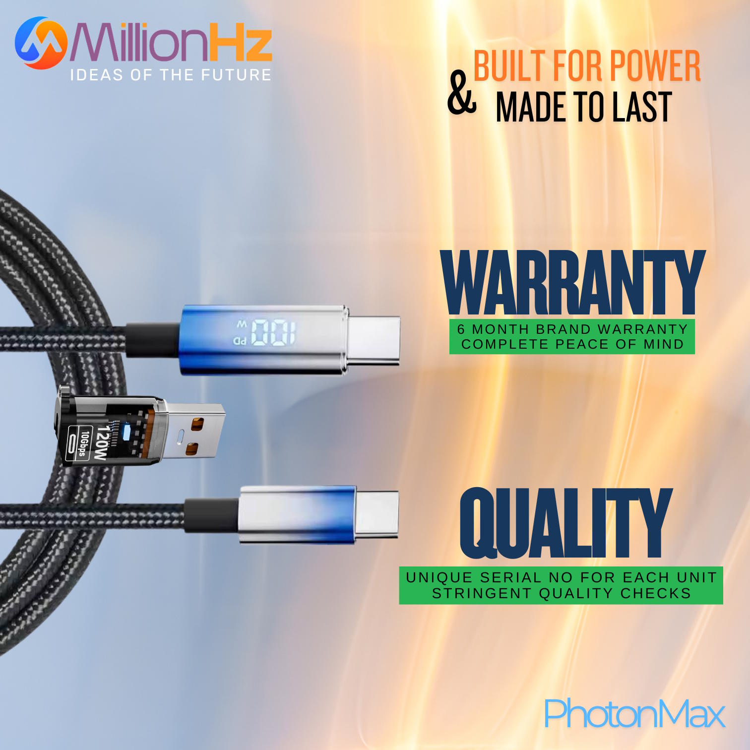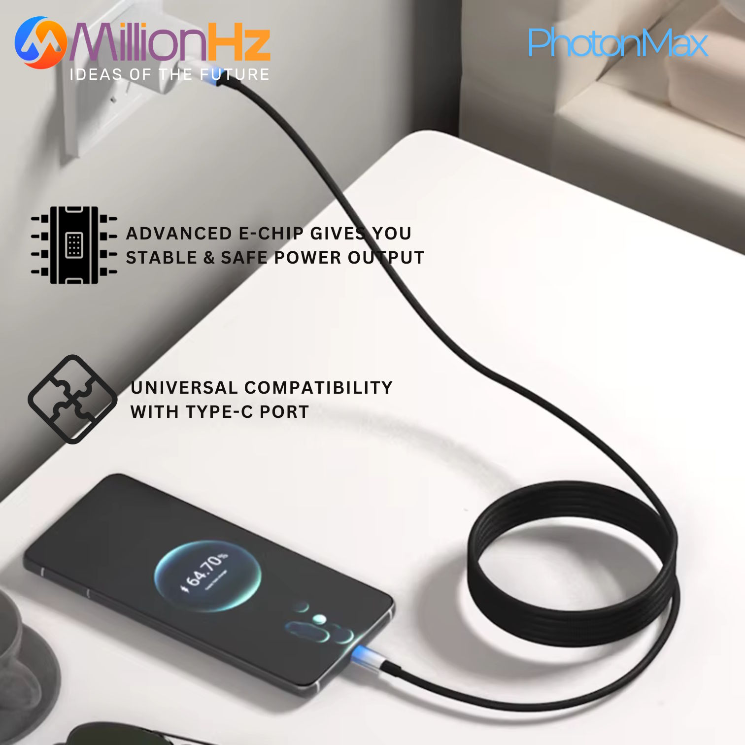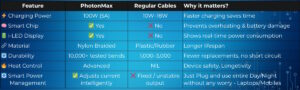 Crafted with reinforced materials for enhanced durability, the PhotonMax cable resists wear, bending, and everyday stress—built to last longer than standard cables.