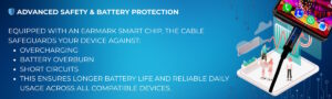 | Special Features | Battery Overburn Protection, Protects Device battery through advanced Earmark Chip inside the cable. |