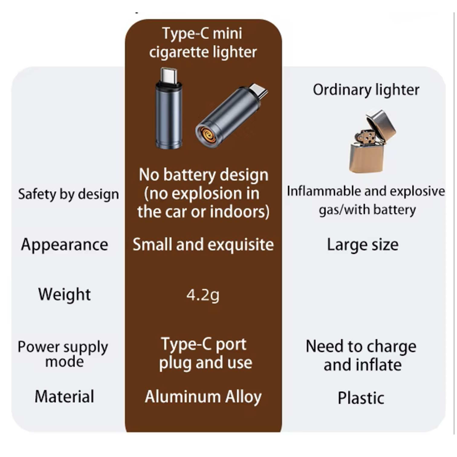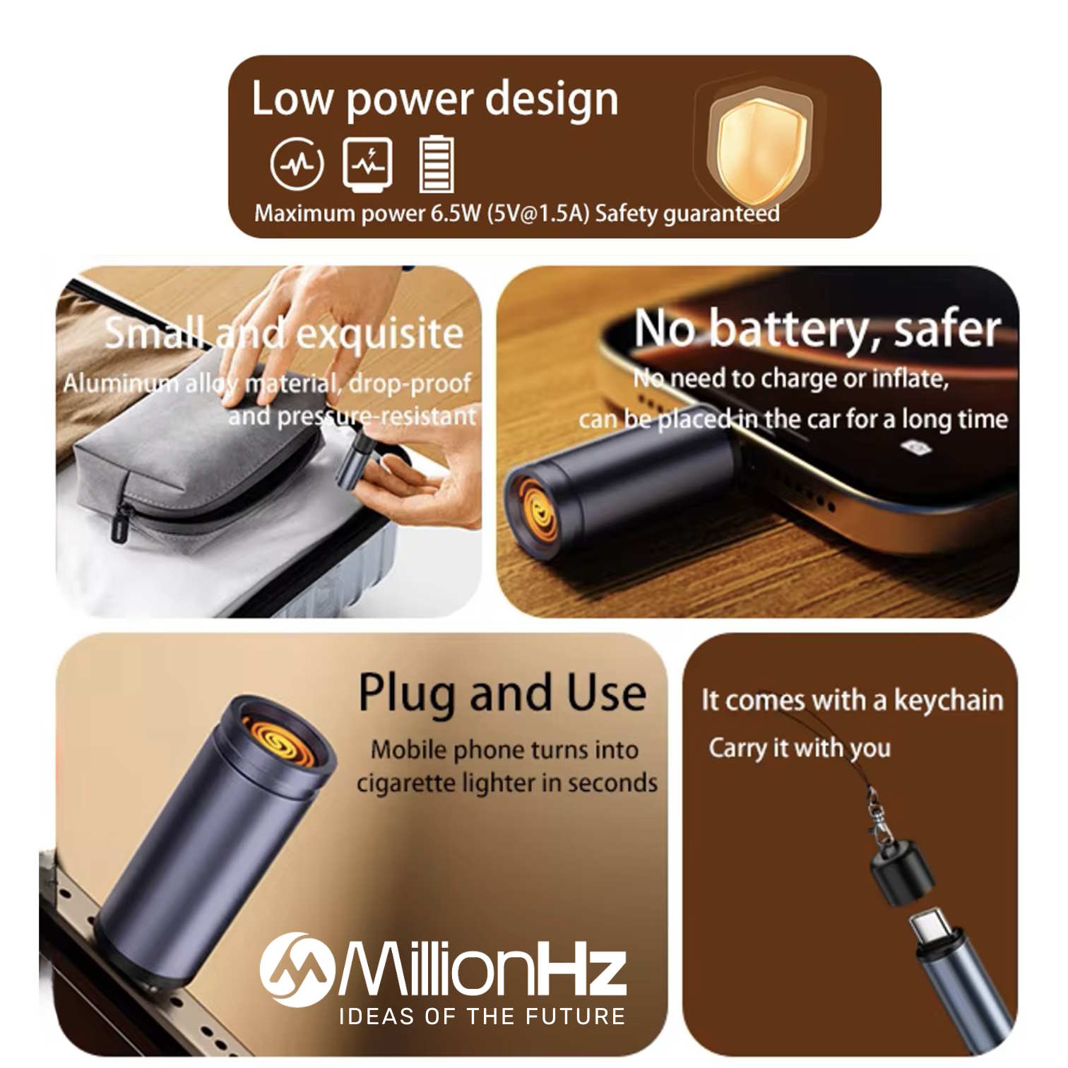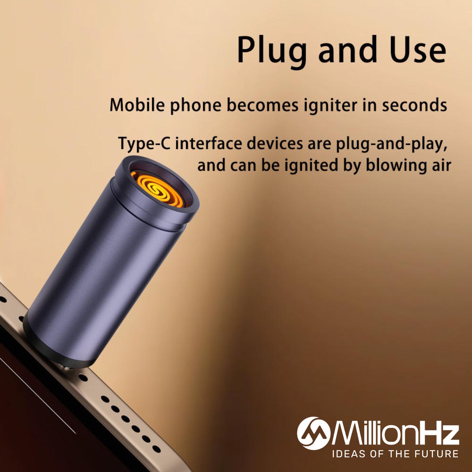 Portable Blowing Mini Battery-free Wireless Silent Type-C Zinc Alloy Electric Igniter or Lighter
