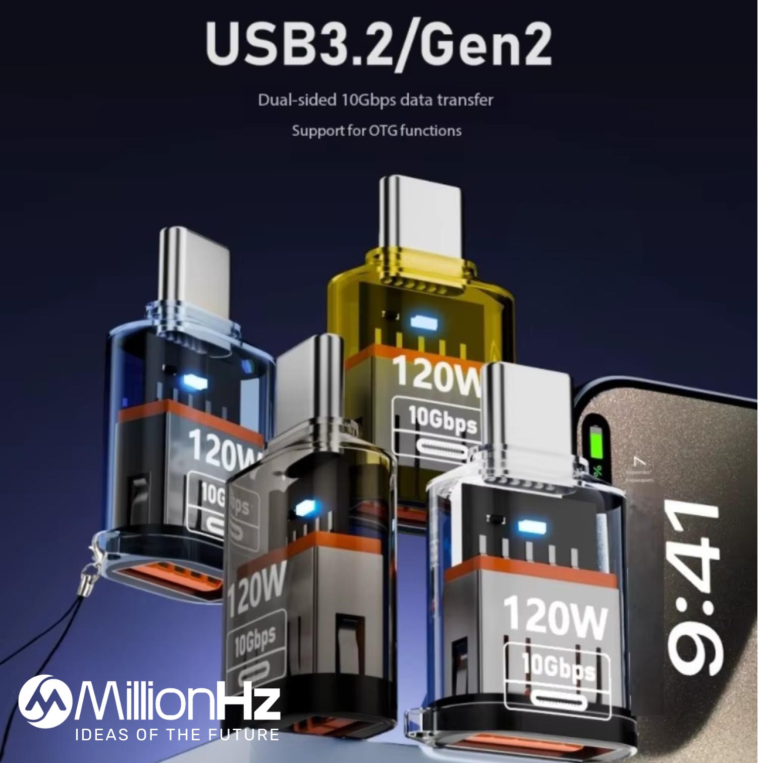 Portable 120W USB Female Type-C Male Fast Charging Adapter DC for Laptop USB Disk Transmission PC Fireproof Material OVP.