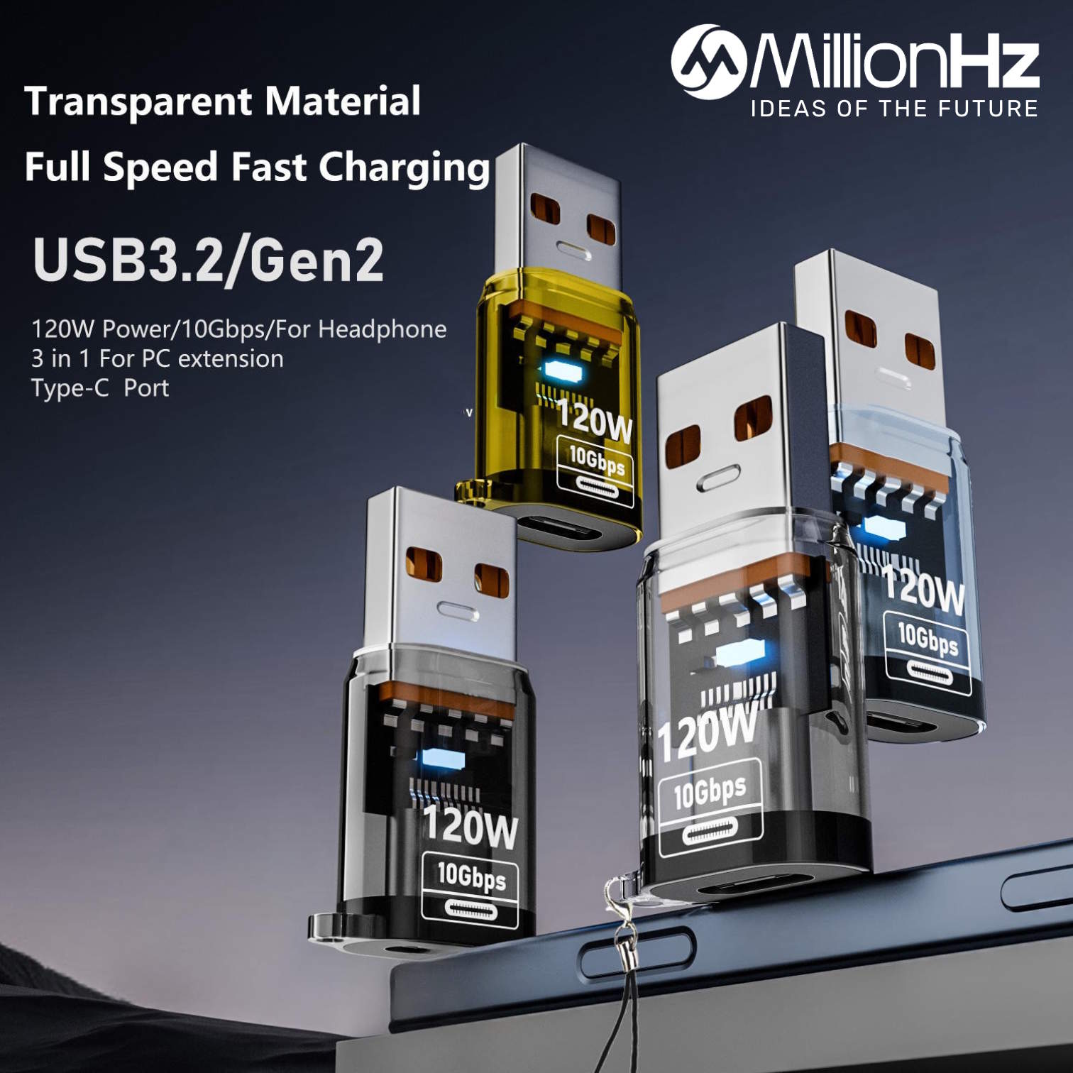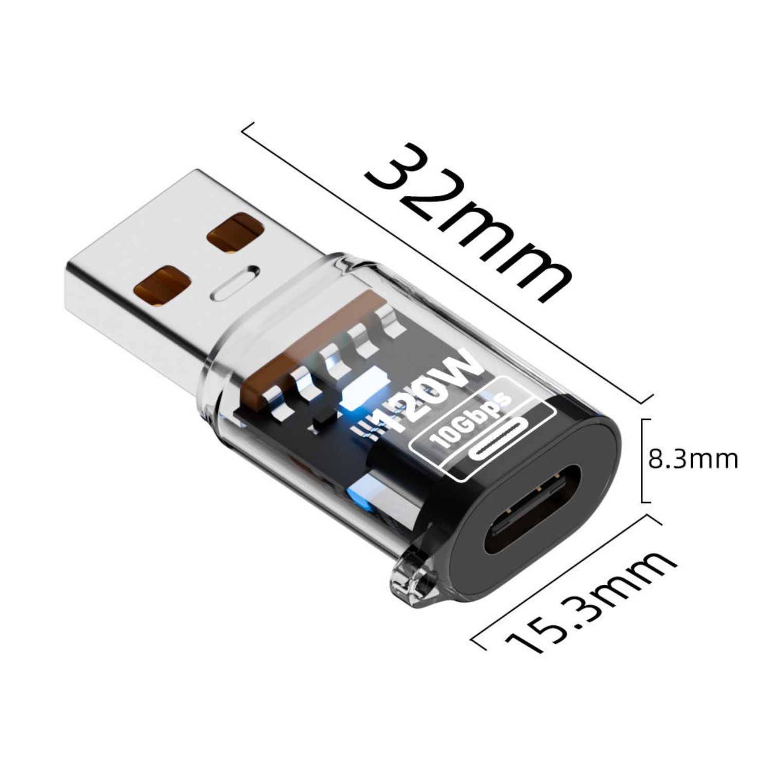Portable 120W USB-A to Type-C Fast Charging Adapter DC for Laptop USB Disk Transmission PC Fireproof Material OVP.